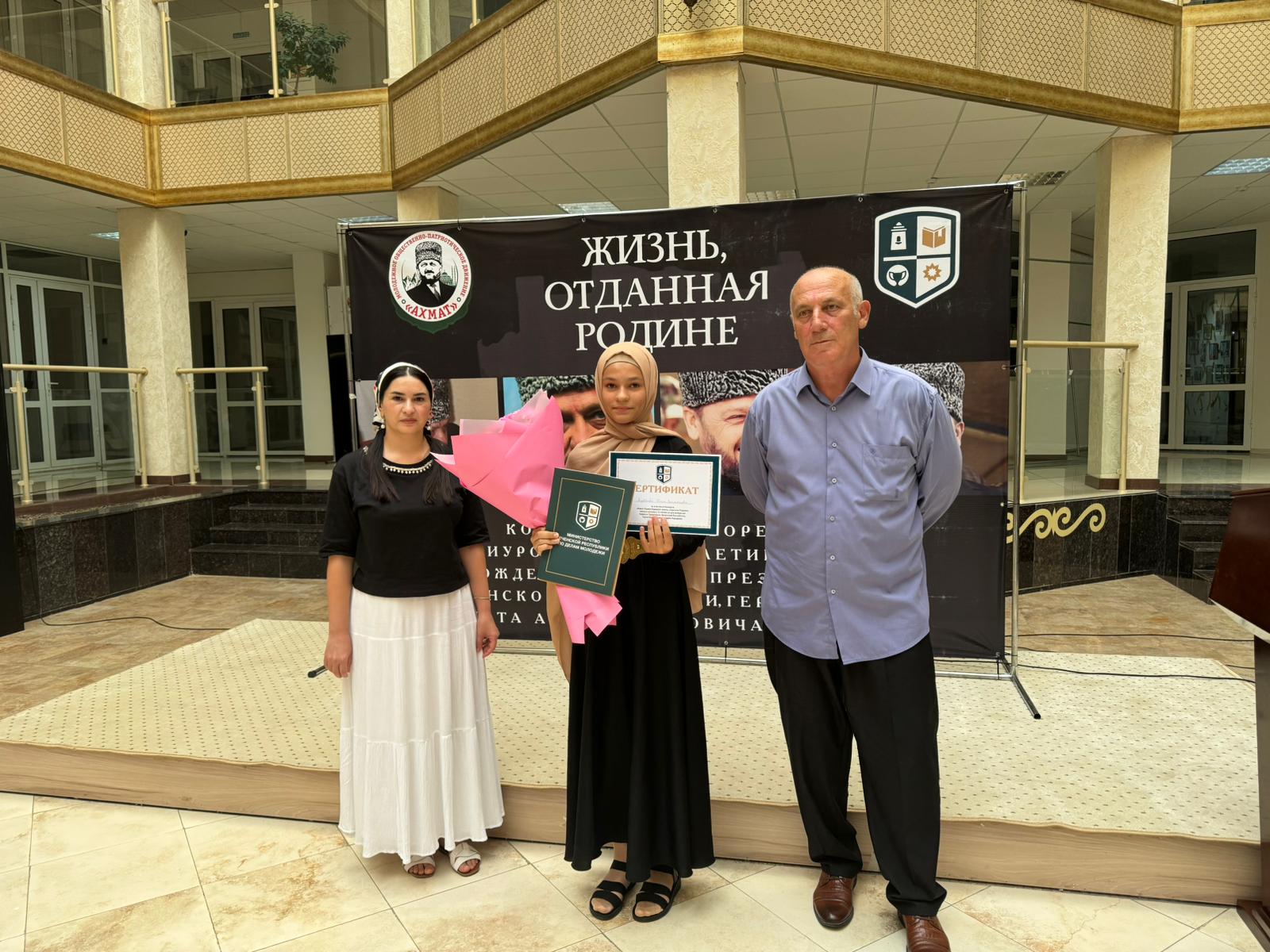12.08.2024Ученица МБОУ "СОШ №4 с.Толстой-Юрт" Атурбаева Иман заняла 2-е место с стихотворением на "Конкурсе стихотворений " посвященному к 73-летию со дня рождения Первого Президента Чеченской Республики, Героя России Ахмата-Хаджи Кадырова (Дала г1азот къобал дойла цунна) в центральной библеотеке г.Грозного "им.А.А.Айдамирова".